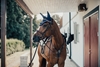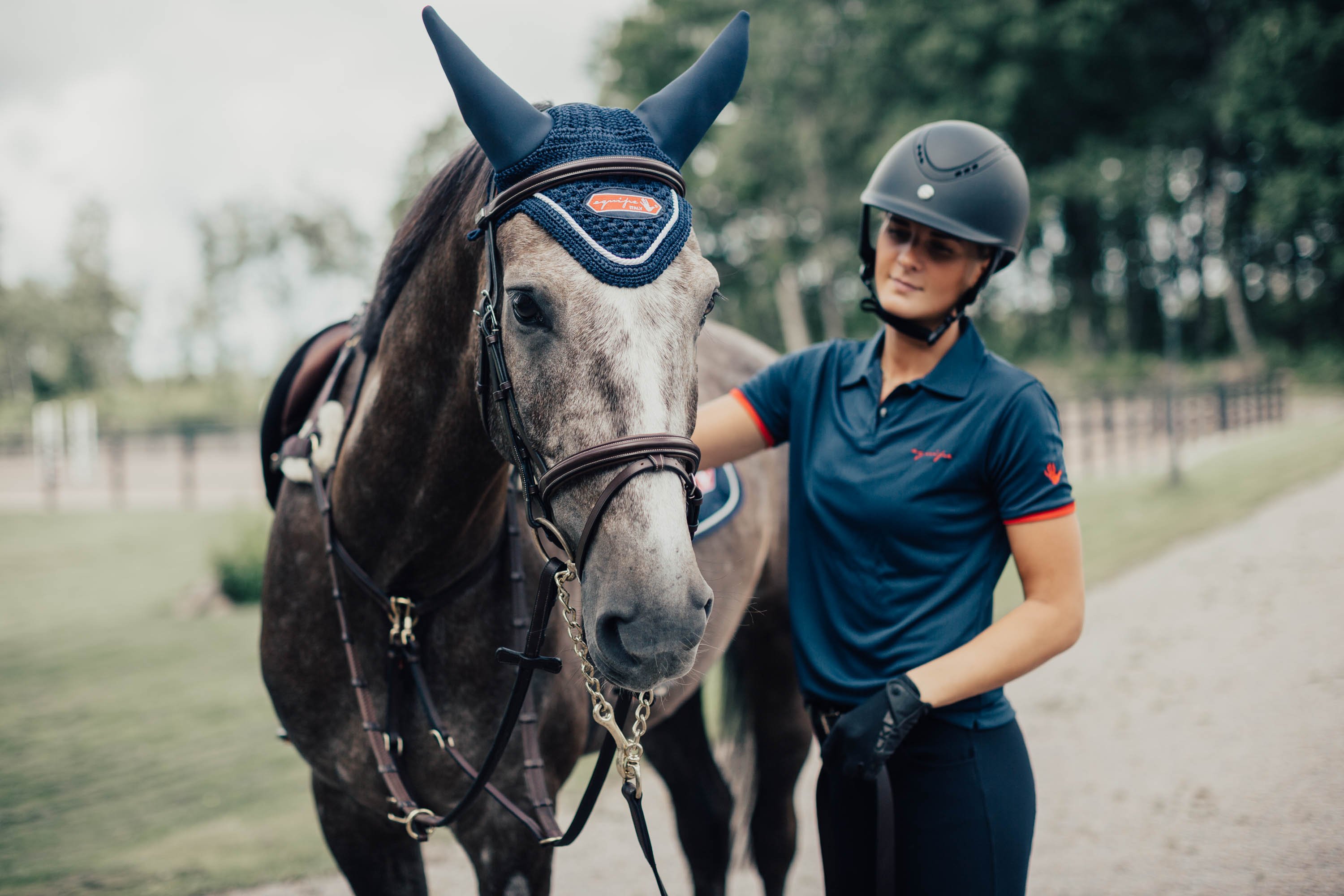 Luva med vadderade öron för att minska ljud och blåst för hästen