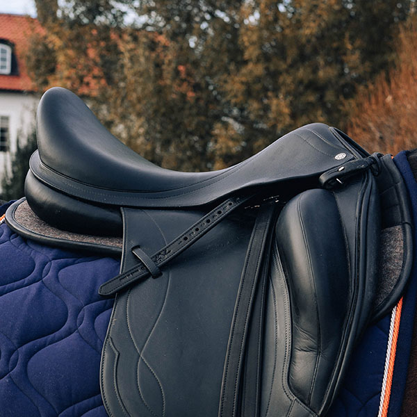 Sadelpadd i material av filt med förstärkning av läder över manken och kanten runt om.