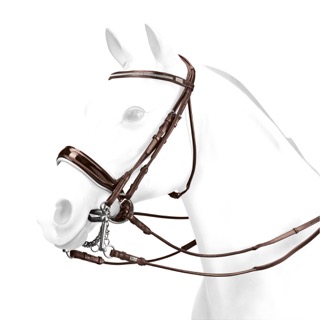 Elegant kandar i högkvalitativt läder med vit padding från Equipe. Bred och lackad nosgrimma med en bekväm pullabackknäppning. Kandaret är försett med rundsydda sidostycken och pannband med strass. Tyglar ingår ej. Tränset är tillverkat av vegetabiliskt garvat läder från Europa.
