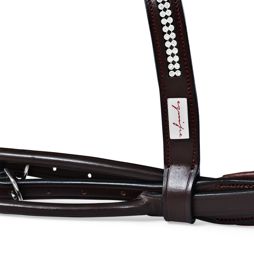 Elegant kandar i högkvalitativt läder med strasspannband från Equipe. Bred nosgrimma med en bekväm pullabackknäppning. Kandaret har rundsydda sidostycken. Tyglar ingår ej. Tränset är tillverkat av vegetabiliskt garvat läder från Europa.