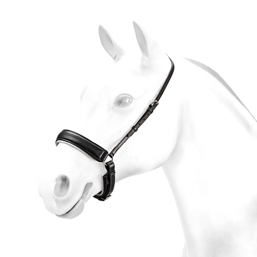 Nosgrimma i svart läder med vit padding från Equipe. Nosgrimman har pullbackknäppning och silverspännen. Modell: Rose.