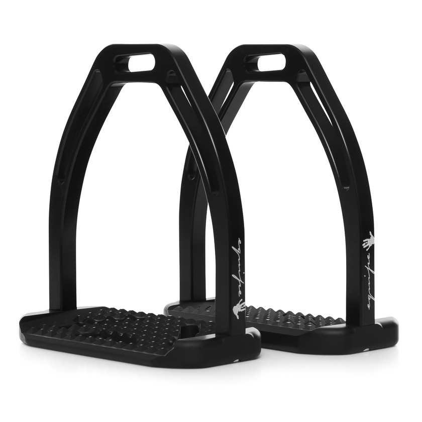 En stabil och lätt stigbygel gjord av aluminium. Stigbygeln har en bred fotplatta som ger en bra stabilitet för ryttarens skänkel. Ståplattan är sluttande, ca 5 grader, som hjälper skänkeln till en naturlig position. Ståplattan är räfflad som motverkar att foten glider ur och tappar fäste. Stigbygeln finns i tre färger; ljus titan, svart och guldfärg.