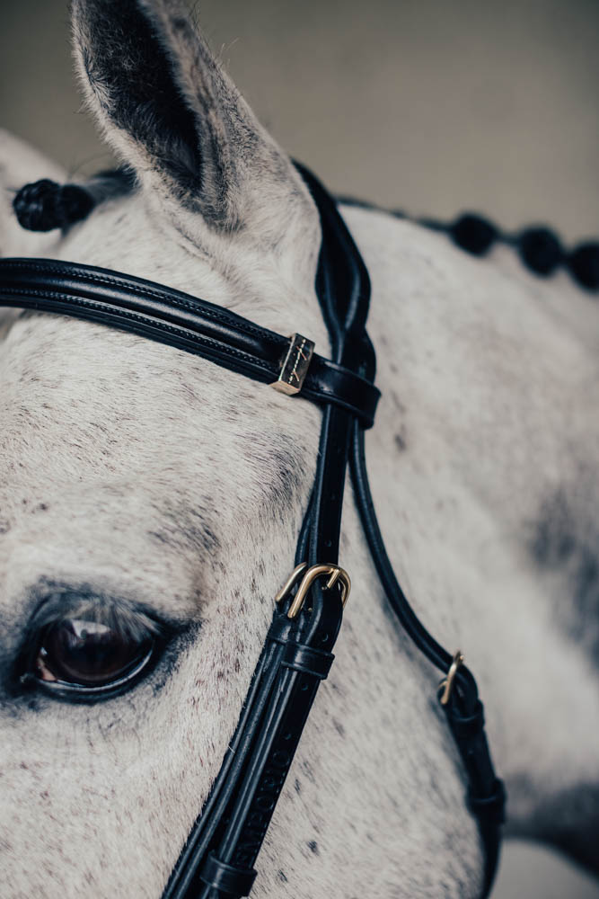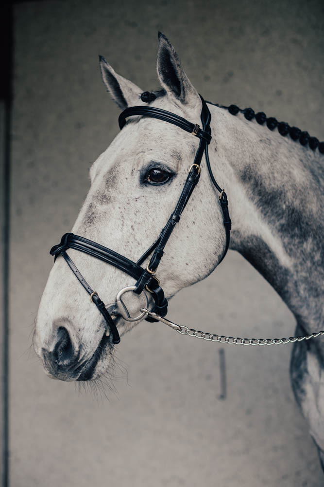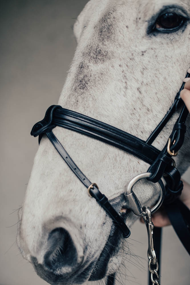 Aachenträns med avtagbar aachenrem från Equipe Emporio. Tränset har silverspännen och en mjuk pullbackknäppning.