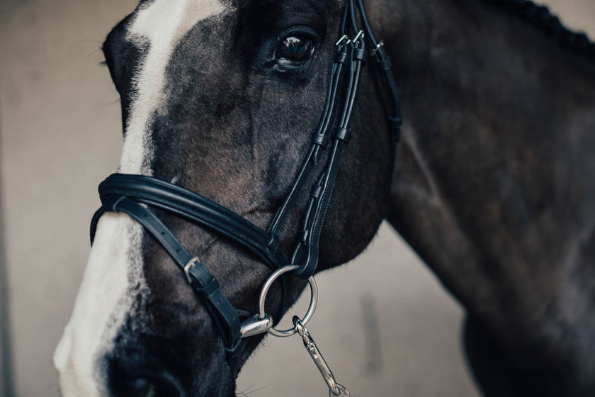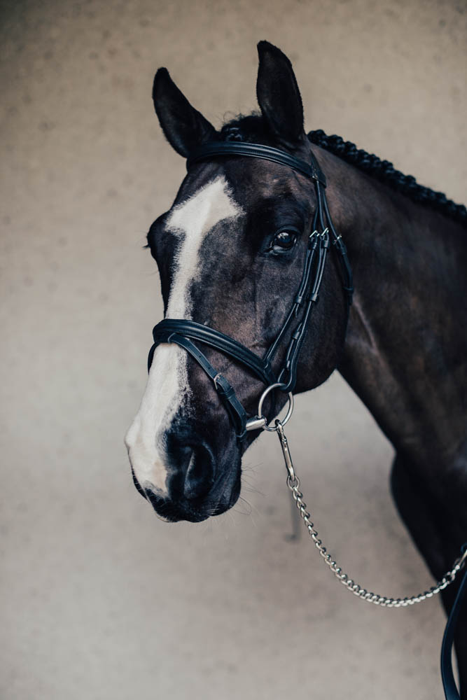 Stilrent aachenträns från Equipe med avtagbar aachenrem. Tränset är utan detaljer på nosgrimma och pannband.