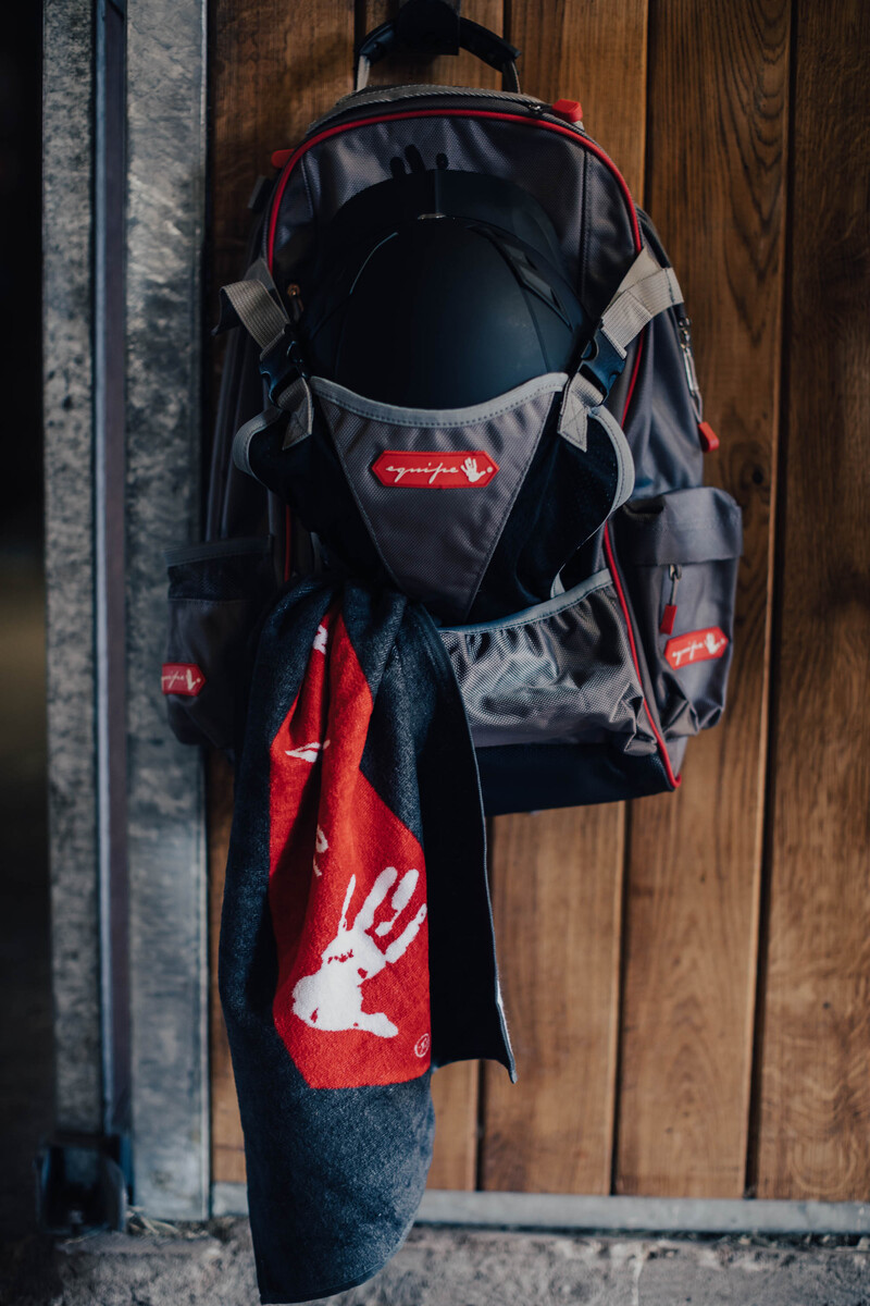 En grooming-handduk i polyester . Perfekt i groomingväskan för att torka av smuts och damm.