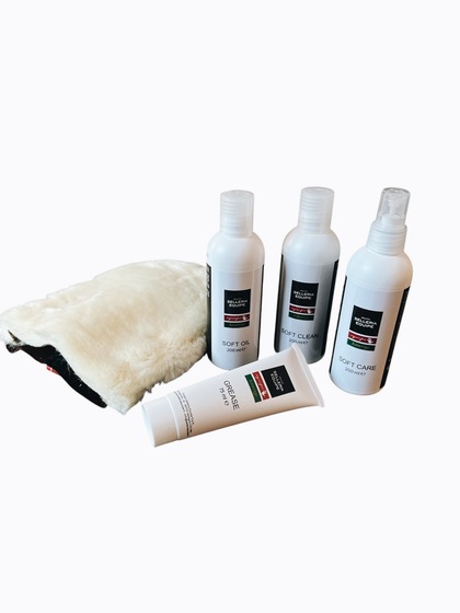 Kit med lädervårdsprodukter från Equipe & Amerigo. Speciellt framtagna produkter för skinn och läder.