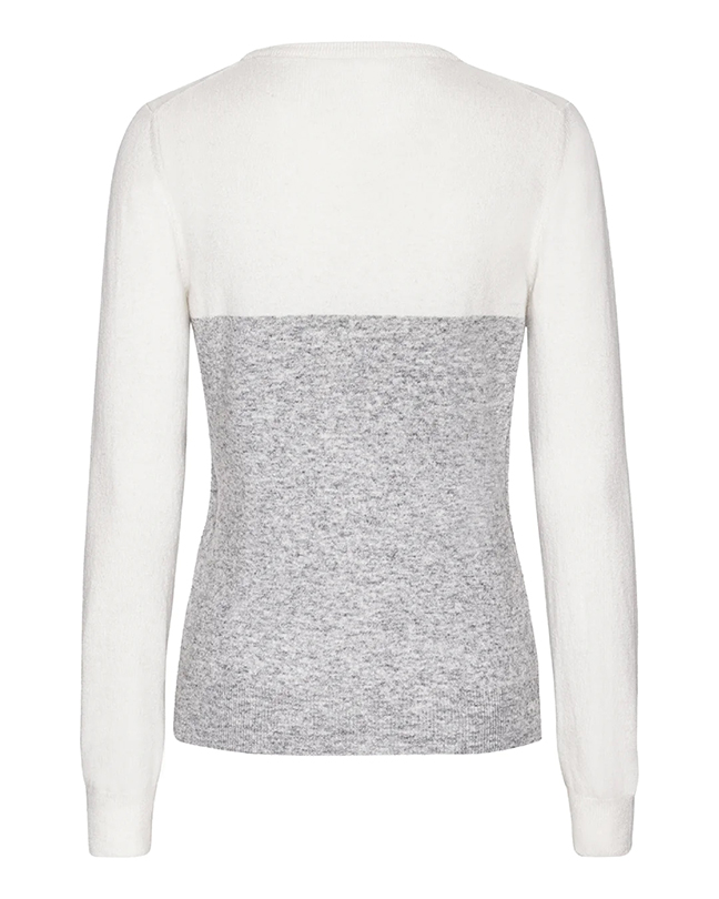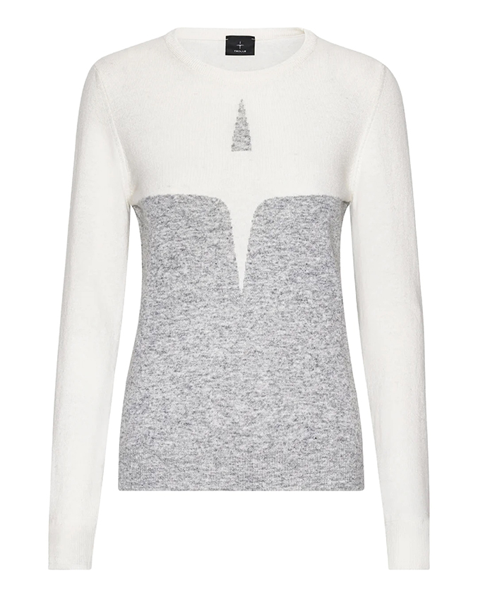 Klassisk rundhalsad tröja av merinoull och kashmir i en fantastisk kvalitet från Trolle Company. Dekorativ stjärnlogotyp på framsidan som delar upp tröjan i tvåfärgssektioner. Lika snygg i stallet som till vardags! Normal i storleken.