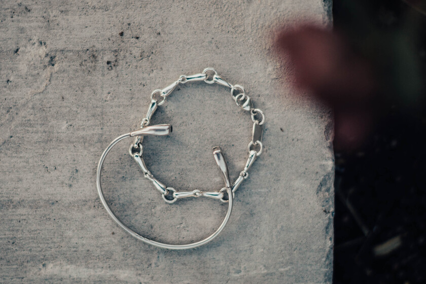 Armband i massivt silver. Fem och ett halvt st små bett, 2,7 cm långa. Totalt 18 cm långt armband som hänger snyggt på handleden.